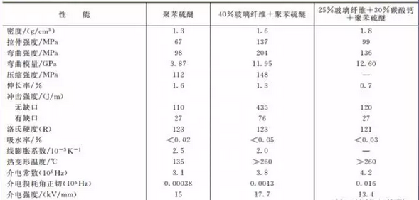 PPS是一種白色、結晶度高的聚合物,密度為1.34。其力學性能優良、拉伸強度和彎曲強度優于PA、PC、PBT等,具有極高的剛性和抗蠕變性,但其脆性較大,缺口沖擊強度較低,低于PA、PC、PBT高于POM。加入玻璃纖維增強后其力學性能更優。PPS屬惰性物質,無毒。