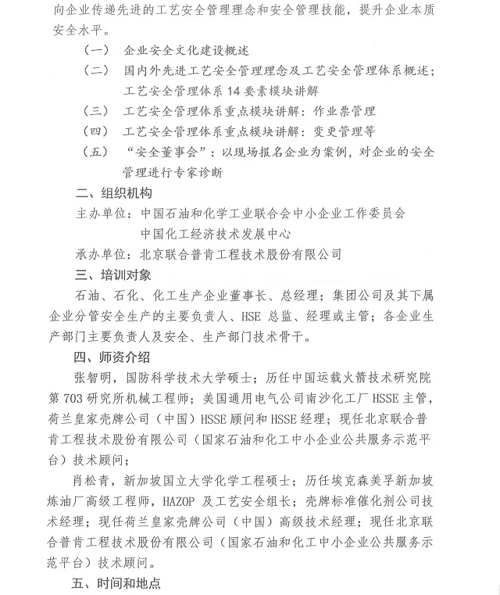關于舉辦石油和化工民營企業(yè)工藝平安管理培訓的告訴