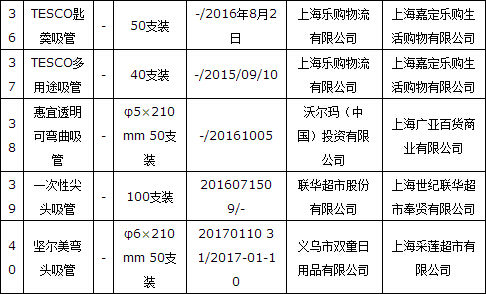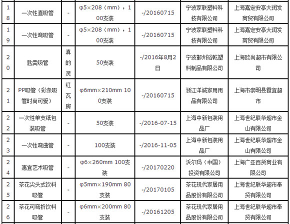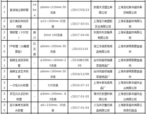2017年上海市塑料吸管產品質量監(jiān)督抽查所檢新項目合乎有關規(guī)范的商品和企業(yè)名錄