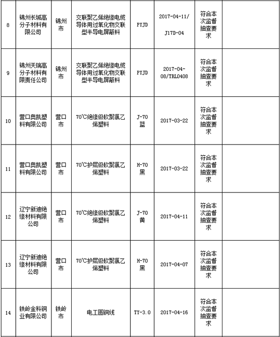 遼寧省質(zhì)監(jiān)局抽檢20批次電纜用資料產(chǎn)品?3批次不合格