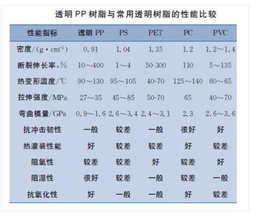 透明PP在抗有機化學可靠性、延展性等層面顯示信息了許多出色性能(見下表)。
