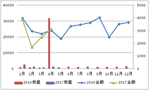 數(shù)據(jù)圖表1 2017年1-4月中國擠出機進口分月度總結(jié)統(tǒng)計分析
