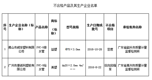 廣東省質監局抽檢93批次塑料管材管件?2批次不合格