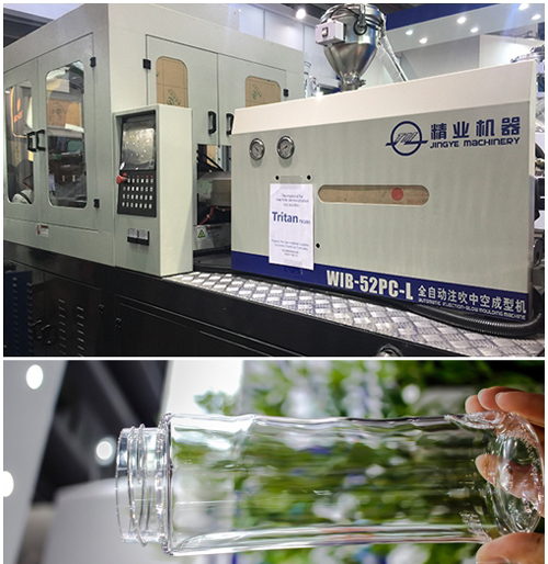 該設備為全自動“注-吹”中空成型機WIB-52PC,應用的原料為Tritan。據統計,Tritan原料為英國EASTMAN企業生產制造的原材料,該原材料沒有雙酚A,低碳環保,徹底符合國家食品類安全驗證規范。