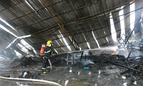 50分鐘后,大火被控制。因為塑膠點燃后造成表層結團內部燃燒的狀況,如不應急處置將有再次燃燒的很有可能。官兵們馬上調節戰斗方法,采用火鉤掀開水槍跟蹤的方法解決剩下殘火。歷經3個鐘頭的勤奮,大火被完全撲滅。