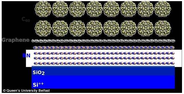 一批來源于皇后大學的國際性學者團隊一同產品研發了一種新式材料,此材料以名叫“C60”的半導體材料組成,是由石墨烯材料和六方氮化硼層次機構而成,因其輕便經久耐用且導電性的特點,因此便于大量生產制造。