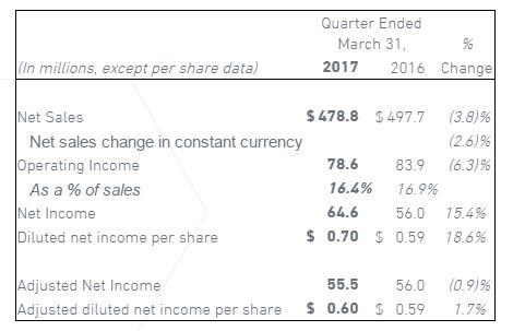 2017年度調節后的EPS指數值保持在2.64美元至2.76美金。 2017財政年度的市場銷售預估降至20億至20.8億美金。