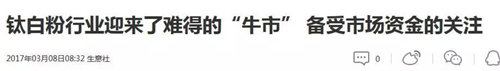 大伙兒是否有被這種今日頭條霸屏呢。鈦白粉的價錢節節攀升,亞洲地區大佬佰利聯股票價格也隨著增漲。