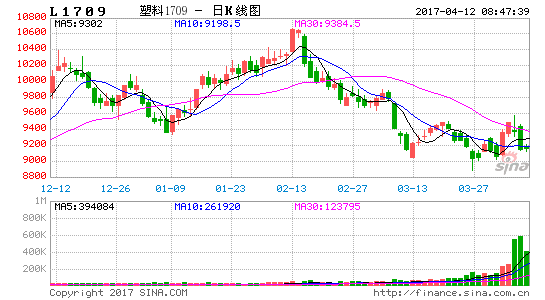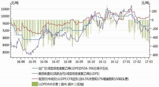 3月份,LLDPE期價呈波動下挫行情,期貨合約1705最少下挫至9015,月底收市至9140,較前月底下挫480元/噸,月下滑4.99%,持股降低10.75股票跌停至23.85股票跌停。3月份大部分地域石油化工批發價總計下降200-350元/噸,當今1705合同期價升貼水流行現貨價約350元/噸。