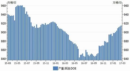 油服企業貝克休斯發布數據信息顯示信息,英國3月31日當周原油鉆井機提升10臺至662臺;英國石油鉆井數據信息早已持續11周取得提升。美國原油生產量相對性前月底生產量提升11.五萬桶至914.8萬桶/日,美國原油生產量近幾個月不斷呈回暖趨勢。