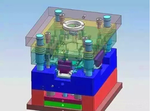 油過濾器部件由4個(gè)不一樣樣子的部件重合而成。在其中,兩個(gè)部件的成形與4個(gè)部件的拼裝選用同一個(gè)沖壓模具。