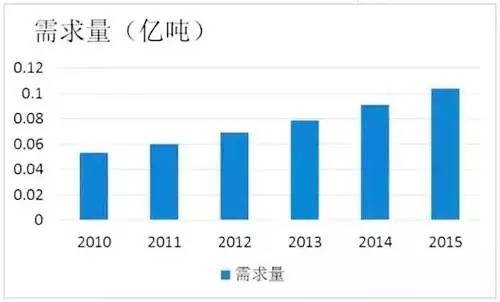 2010-2015年我國改性塑料市場的需求(億多噸)