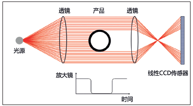 線性CCD感測器測量技術(shù)關(guān)鍵有二種。第一種方式是運(yùn)用光學(xué)設(shè)備(鏡片組)使激光聚焦點在一個線性感應(yīng)器上。根據(jù)測算物件黑影圖象中發(fā)暗的二極管,就可以明確直徑尺寸。這類方式的優(yōu)勢是不用挪動構(gòu)件,但鏡片組的成本費(fèi)較高(圖2)。