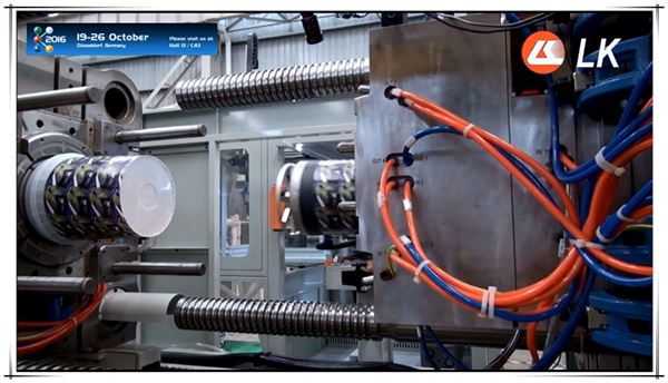 Forza-Ⅲ 450T髙速平穩的機器設備相互配合機械臂,當場制做20L PP塑料桶,該生產流水線還結合了兩面包裝印刷模內貼標技術性,將中下游包裝印刷工作工藝流程立即與注塑工藝流程緊密結合,全部商品周期只需18秒,集中體現力勁Forza系列兩板機環保節能、高效率、經濟發展、經久耐用的特性特性。