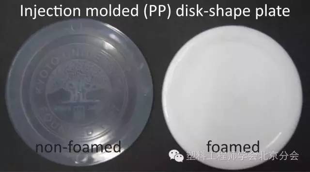 圖3 聚丙稀(PP)注塑制品(左)和它的微孔泡沫(右)