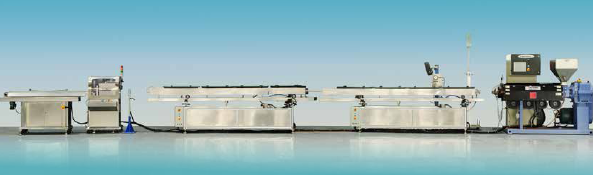 生產線由一個擠出機,水冷散熱,精準內部氣路設備,外徑檢驗和牽引帶裁剪構成。多功能的微管可視人流生產線能夠生產加工單面或兩層醫療管,單腔帶/沒有顯影液條,配備有兩個擠出機,外徑/內徑壁厚檢驗和自動控制系統,根據真空泵定形箱和牽引帶有線數字電視操縱,高級中間自動控制系統。兩根試驗線都可以對外開放給顧客開展試驗和產品研發。