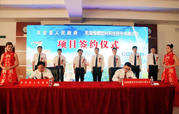 2016年7月8日,海螺型材與吉林哈爾濱市農安縣市人民政府簽定了年產量4萬噸塑料型材投資合同。