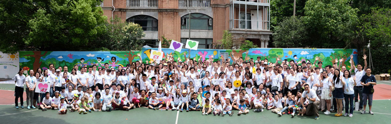 PPG志愿者以及親屬同愚園路第一中小學老師學生合照