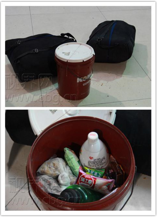 為什么說它是挪動驛站?楊大姐方向大家展現,原先,這桶里裝著夫婦二人一路上的所有膳食,曲奇餅干、水,也有小零嘴。