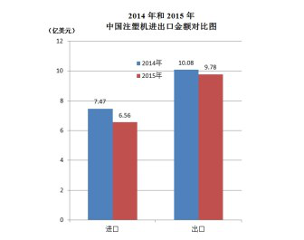 據中國中國海關總署全新統計分析顯示信息,2015年中國進口塑料機械設備1.79萬部,比去年降低17.6%;進口金額15.兩億美金,同比下降22.8%。出口45.86萬部,環比大幅度提高99.3%,進口金額為18.8億美金,環比微降1.8%。進、出口平均價仍差距,各自為8.5萬美元/臺和0.41萬美金/臺。