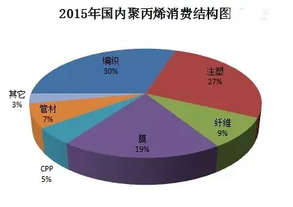 由圖中可發(fā)覺2015年聚丙烯消費(fèi)中,手工編織仍是中國銷售量較大 的類型,占全國各地消費(fèi)總產(chǎn)量的30%,與上年對比略微降低,根本原因手工編織行業(yè)盈利委縮,且中國工程建筑行業(yè)用塑料編織袋量降低,立即危害手工編織行業(yè)需求量。注塑及CPP、管件較上年略微升高,因注塑行業(yè)中高抗撕裂注塑在家用電器及汽車電子設(shè)備中需求市場前景不錯(cuò),推動(dòng)中國高抗撕裂注塑需求量升高。CPP需求較上年2%,也是聚丙烯消費(fèi)中提高迅速的商品,其在食品包裝材料行業(yè)需求室內(nèi)空間很大,各種中下游加工廠擴(kuò)張?jiān)O(shè)備開發(fā)設(shè)計(jì)各種適用高溫蒸制等類膜料設(shè)備,帶動(dòng)其需求進(jìn)展。