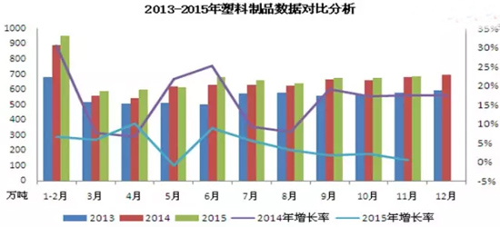 比照,近三年中國塑膠制品生產(chǎn)量,逐漸展現(xiàn)增長趨勢。2015年看來,1-4月份,環(huán)比增長率持續(xù)增漲,5月份受價(jià)錢上漲危害,中下游產(chǎn)品產(chǎn)量遭受危害,環(huán)比增率出現(xiàn)降低。6月份之后,受塑料制品廠家價(jià)錢持續(xù)縮量下跌危害,塑膠制品生產(chǎn)量雖然有一定的增漲,但年增長率仍是持續(xù)下降。