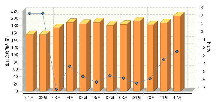 中國輕工業經濟形勢及預測分析警報系統檢測顯示信息:2015年塑膠制品領域經營規模遇到公司進行出口交貨值2192.六億元,同比下降3.72%。在其中:12月份進行出口交貨值206.8億人民幣,為2015年內每月增長幅度最大值,同比下降2.01%。出口交貨值月度增長速度已持續三個月回暖。