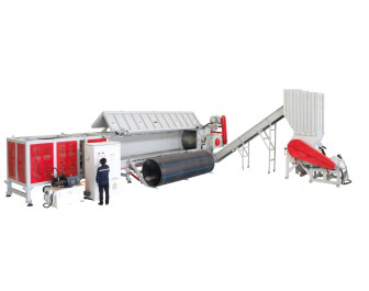 粉碎,也是重要的流程。蘇州市徑山塑料回收輔助機器設備有限責任公司將展出其DYSSG管件撕破和粉碎發電機組。該發電機組可用以直徑1200MM的PE、PP、PVC管材撕破,長短達3-5M的管件立即粉碎,不用切分,其轉速比遲緩運行穩定,各種各樣管件放進水準的上料槽中,上料槽全自動關掉,由液壓機推動將管件引向軸管理中心開展粉碎。撕破后的原材料根據皮帶輸送機,帶到粉碎機開展二次破碎,進行必須的粉碎顆粒直徑。
