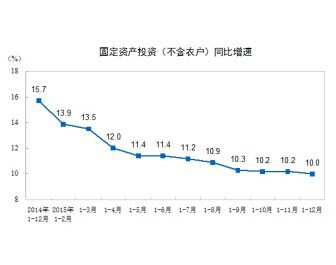 已有人閱讀此文 - -據中國中國統計局全新發布,2015年中國固定資產項目投資(沒有農戶)為551590億人民幣,比去年為名增長10%(扣減價錢要素,具體增長12%),增長速度比1-11月份下降0.兩個點。從同比速率看,12月份固定資產項目投資(沒有農戶)增長0.68%。