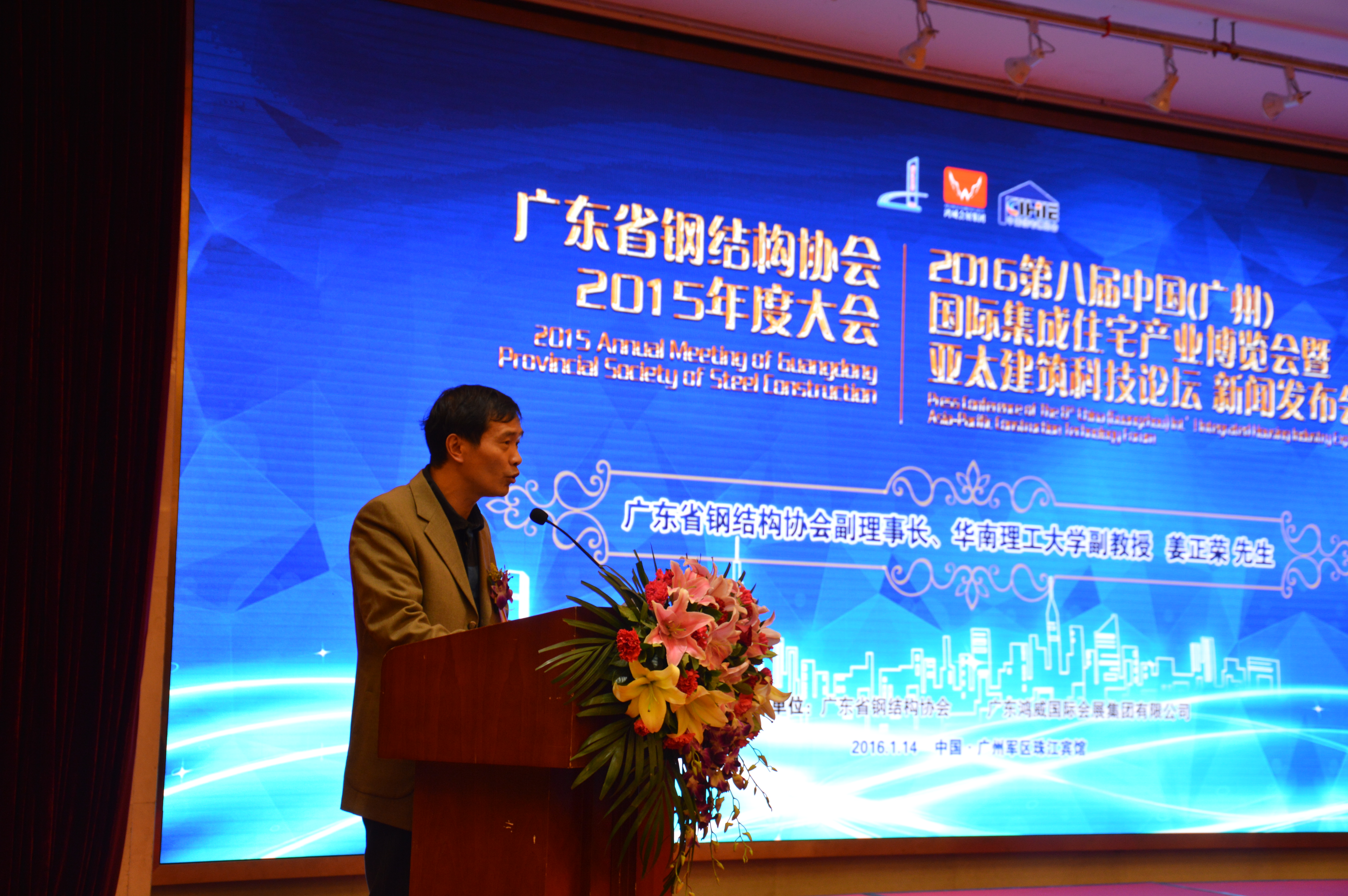 (廣東鋼結(jié)構(gòu)協(xié)會(huì)副會(huì)長(zhǎng)、華南理工大學(xué)土木工程與交通學(xué)院副教授職稱姜正榮老先生致歡迎辭)