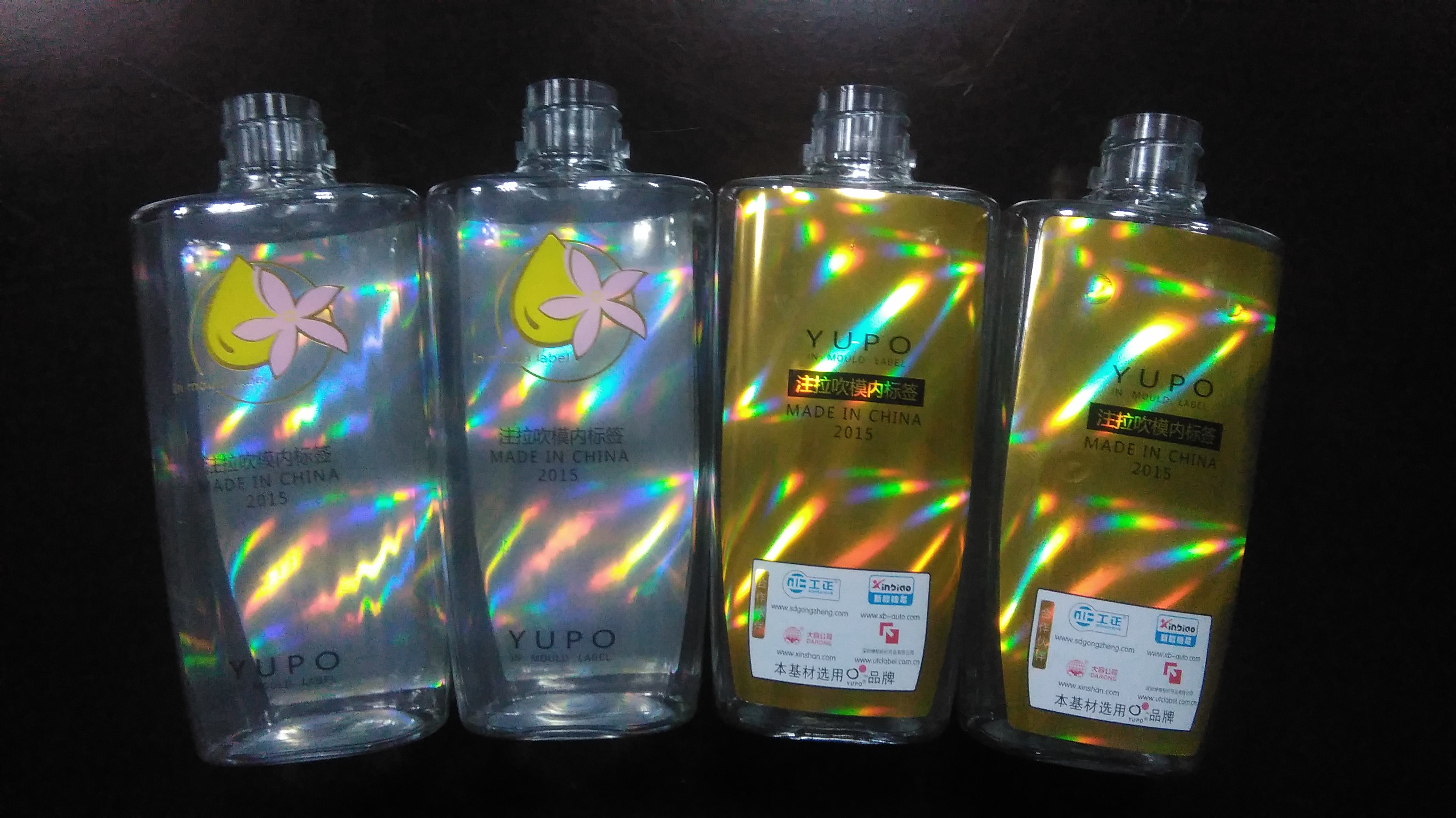 此外,陳總還詳細介紹了PET-IML工藝的生產制造基本原理:根據機械臂先把結構內標簽送進模具內腔,瓶胚的溫度將標簽后背的干固膠融解,進而標簽與玻璃瓶融合一體,完成一站式的生產制造制成品。能合理處理傳統式標簽易掉下來、毀壞、發霉等困惑,有利于提升外型企業形象,輕輕松松處理厚壁器皿,而且PET-IML與裸瓶的生產周期同樣,能提高工作效率節約成本,還具備防偽標識的特性。該技術性廣泛運用于日化用品、清洗、衛浴用品、食品類、轎車、醫用品等行業。