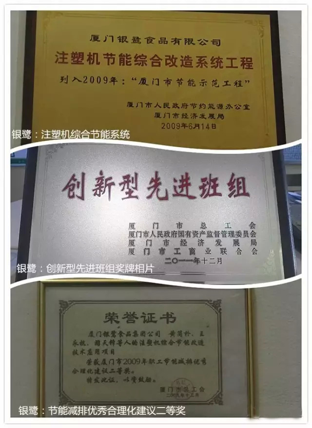 黃場長表明,之前廈門基地注塑廠也應用過別的知名品牌的塑料機,可是設備故障率高、安全性能低、可靠性差。改用博創塑料機后,設備平穩高效率又環保節能,安全性能高,噪音低,生產率也提高了許多。據統計,注塑廠于2009年度向廈門人民政府節約資源公司辦公室提報“注塑機節能綜合性改造系統”,被授于《注塑機節能示范工程》,提報工作人員黃樸素、劉建杭、游天鋒等被廈門婦女聯合會授于“廈門市2009年度節能降耗出色意見和建議二等獎”,廈門基地注塑廠三片罐注塑加工組于2011年度被廈門婦女聯合會、廈門市經濟發展局等企業授于“技術創新先進班組”等光榮稱號。也從而廈門基地注塑廠對博創的設備加倍信賴。