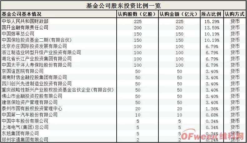 據公告內容顯示,基金公司注冊資本為 1472億元人民幣,股東成員實力雄厚,除了財政部、國開金融、中國煙草等中央部委、國有大型企業以外,不少A股公司的大股東(上海電氣集團、宇通集團)悉數在列。