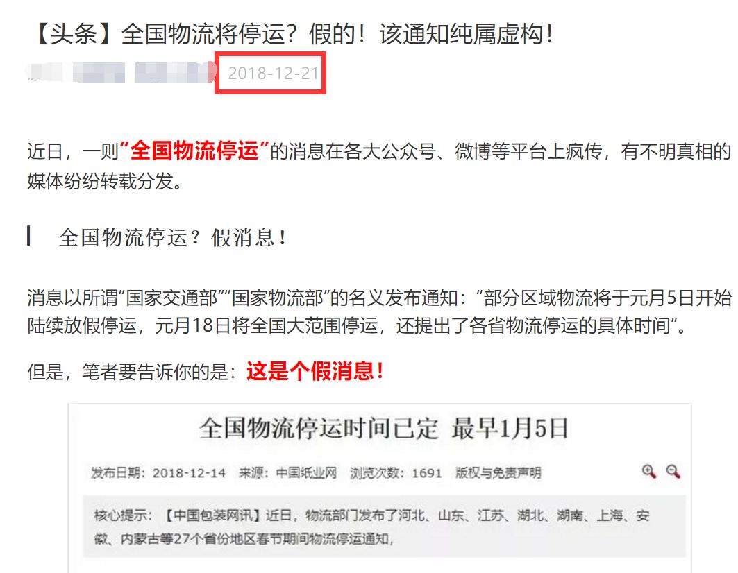造謠!12月25日開端全國(guó)物流大停運(yùn)?假的!