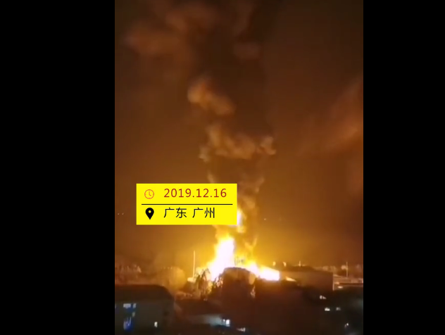 廣州一化工廠氣霧罐成品突發爆炸,火苗竄起20層樓高!