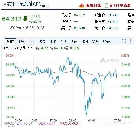 原油價格與黃金價格走勢類似,由于受地緣影響大漲后開始下跌,但原油商品價格跌幅遠超黃金價格。北京時間1月16日6時10分,布油原油期貨價格下跌0.28%。