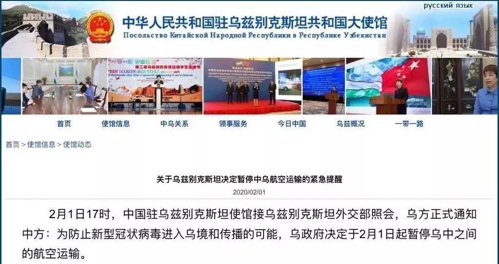 烏茲別克斯坦,2月1日起,暫停烏中之間航空運輸。
