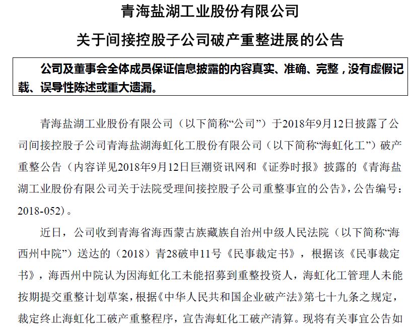 未招到重整投資人,又一化工企業破產清算