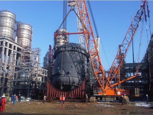 據了解,本次大型設備的首吊,是整個工程項目的重大控制節點,也是九江石化公司和公司的關注焦點。為順利完成此次吊裝任務,項目部各部門人員積極的組織協調,從前期策劃到立項、從吊裝方案編制到集團公司專家組方案審查、從大型設備運輸到配合現場焊接組對吊裝,九江石化項目部多次與業主、監理、安裝單位、中鐵九橋碼頭、交通、市政、國家電網、通信等相關部門召開專題會,全面細致對運輸和吊裝方案進行論證,不斷優化,達成共識。項目全體將士克服超大型設備市區運輸人流量和車流量壓力大、人員少、工作量大、時間緊等諸多不利因素,24小時連續倒班作業,風雨無阻,安全高效地完成每個時間節點任務,將所有運輸和吊裝前的工作準備就緒。成品塔(C-604)的吊裝完成,拉開了九江石化項目大型設備吊裝的序幕!