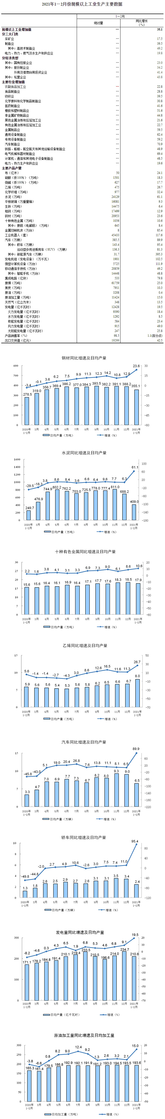 2021年1-2月份規(guī)模以上工業(yè)增加值增長35.1%
