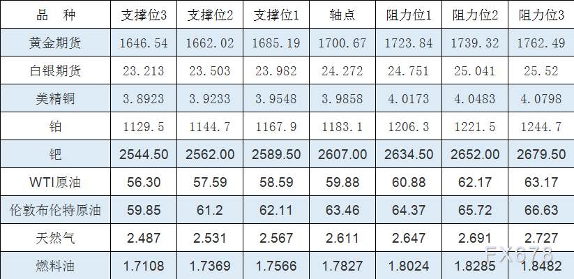 4月1日黃金、白銀、原油等商品期貨阻力支撐位