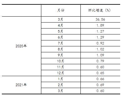 根據(jù)季節(jié)調(diào)整模型自動(dòng)修正結(jié)果,對(duì)2020年3月至2021年2月份規(guī)模以上工業(yè)增加值環(huán)比增速進(jìn)行修訂。修訂結(jié)果及2021年3月份環(huán)比數(shù)據(jù)如下: