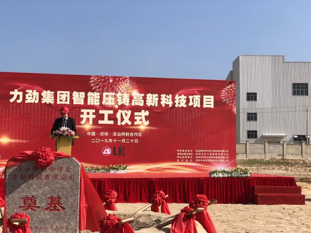 已有人閱讀此文 - -11月20日,位于深汕特別合作區(qū)的力勁集團智能壓鑄高新科技項目正式啟動,開工奠基儀式在今天舉行。力勁集團創(chuàng)始人劉相尚先生、CEO劉卓銘先生、力勁集團深圳領(lǐng)威科技有限公司總經(jīng)理潘玲玲女士、華南市場部總監(jiān)鄧毅明先生及項目總承包單位相關(guān)負責人等參加。