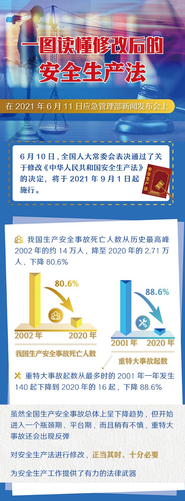會(huì)上,應(yīng)急管理部副部長(zhǎng)宋元明介紹,6月10日,全國(guó)人大常委會(huì)表決通過了關(guān)于修改《中華人民共和國(guó)安全生產(chǎn)法》的決定,并將于2021年9月1日起施行。