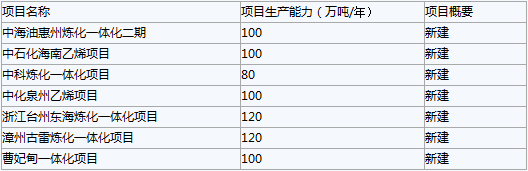 投產的“大乙烯”項目。“十三五”規劃期間我國將建成投產的“大乙烯”項