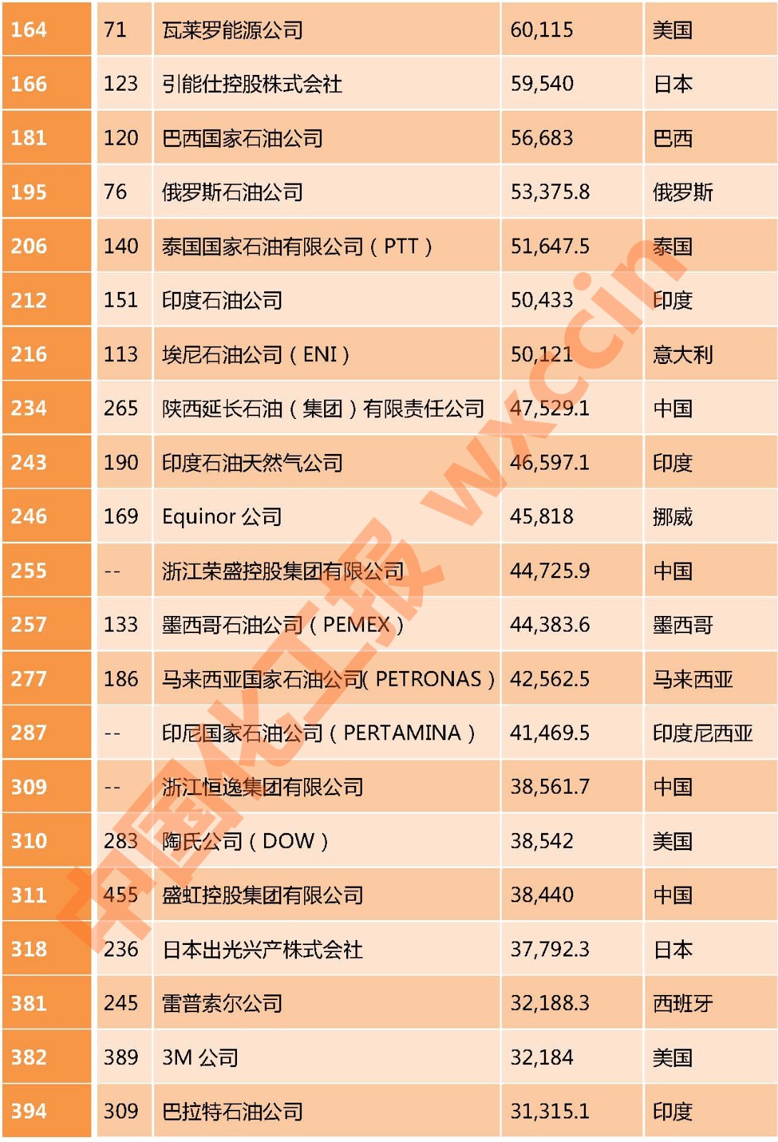 2021年《財(cái)富》世界500強(qiáng)石油和化工行業(yè)榜