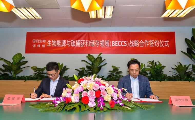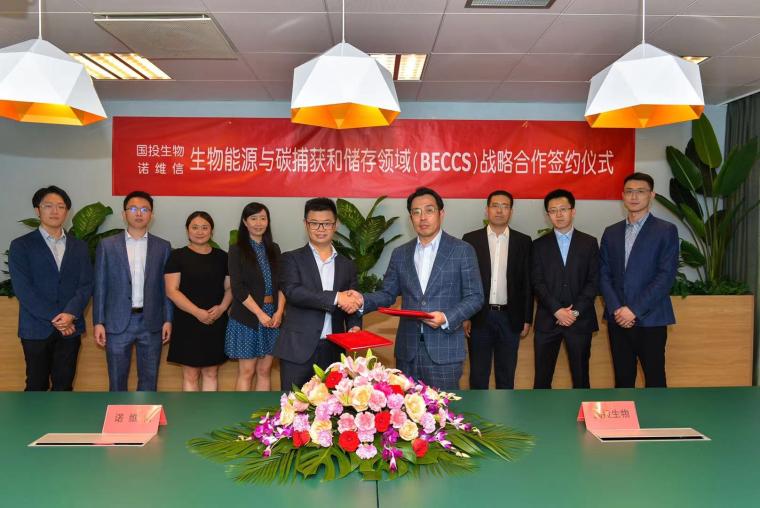 已有人閱讀此文 - -近日,諾維信(中國)投資有限公司和國投生物科技投資有限公司簽署生物能源與碳捕獲和儲存領域(BECCS)戰略合作框架協議。諾維信中國區農業及工業生物解決方案副總裁葉笑風,諾維信中國區谷物加工工業技術總監段俊欣與國投生物黨委副書記、總經理林海龍,副總經理劉勁松等人出席儀式。