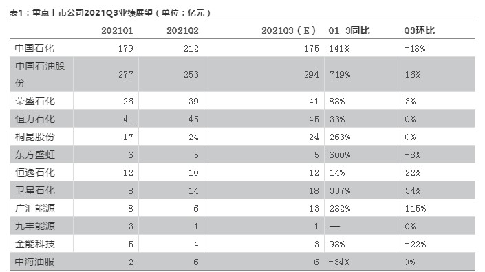當前正值中季報,天風對行業部分重點公司的三季報業績進行了預測,如下圖,不難看出受益于原油價格的走高,其中大多數都出現了較高的增長。