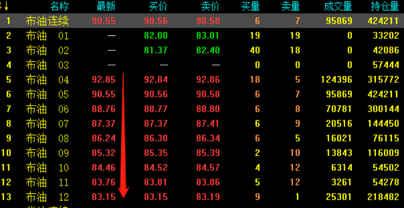 從交易結構上看,布倫特原油期貨的近月和遠月價格比較來看,呈現出明顯的貼水結構。就是說,離現在越遠的月份,價格比現在的便宜。比如,最近的合約價格是4月份合約,報價是92.85美元,而今年12月份的合約,報價為83.15美元,時間越拉長,價格反而不如現在。