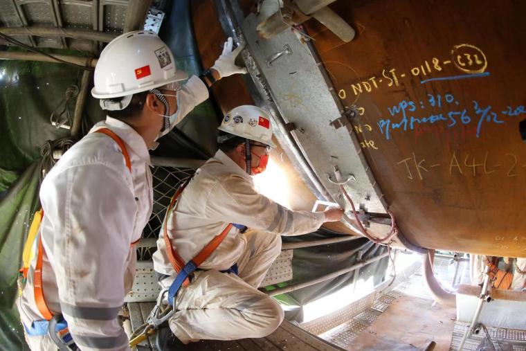 據中海福陸建造項目經理王長林介紹,“海基一號”導管架建造期間受新冠疫情影響,人員復工、材料設備到貨等遇到極大困難,同時面臨焊接控制變形難度大、吊裝難度高、工期緊張等諸多挑戰。為此,項目團隊采用多種舉措,高效推進建造施工,全方位打造立體質量管控方案,使焊接總體合格率保持在99%以上的行業領先水平,創造“零傷害”、“零事故”的驕人安全績效,成功確保項目順利完工。